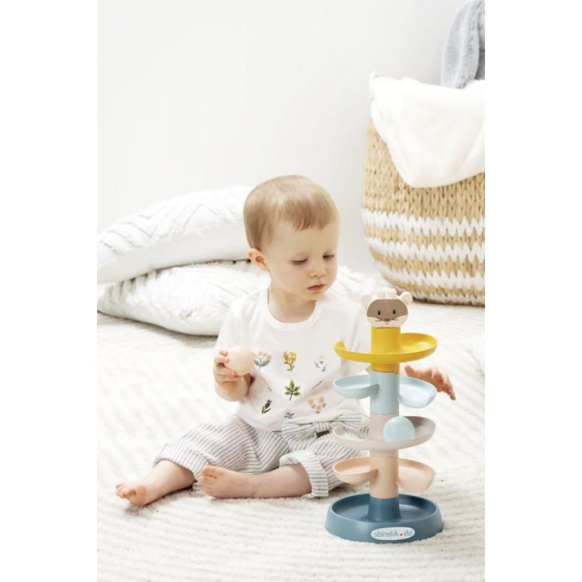 Postavte věž, položte míček na vrchol a sledujte, jak se kutálí dolů kolem roztomilého medvídka.