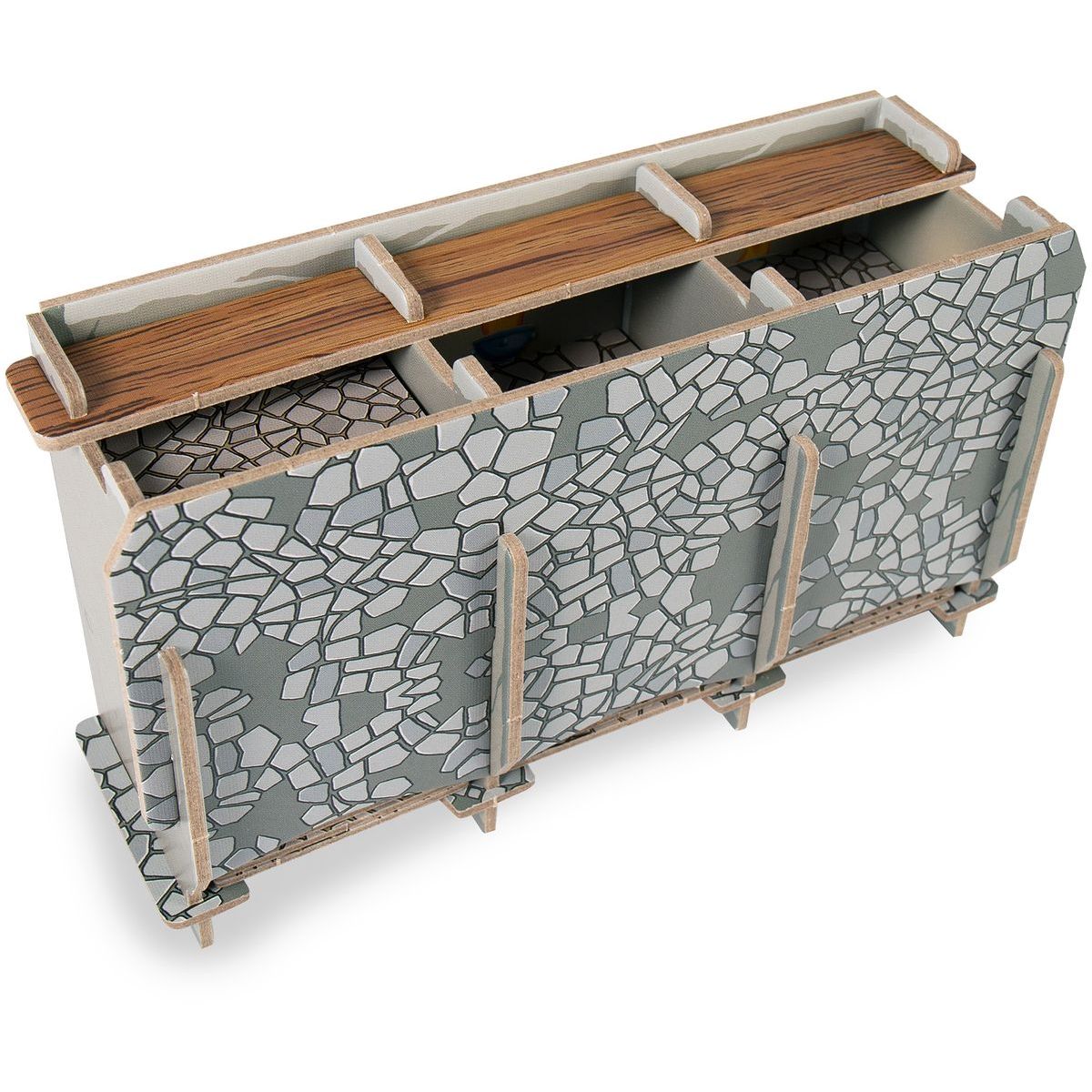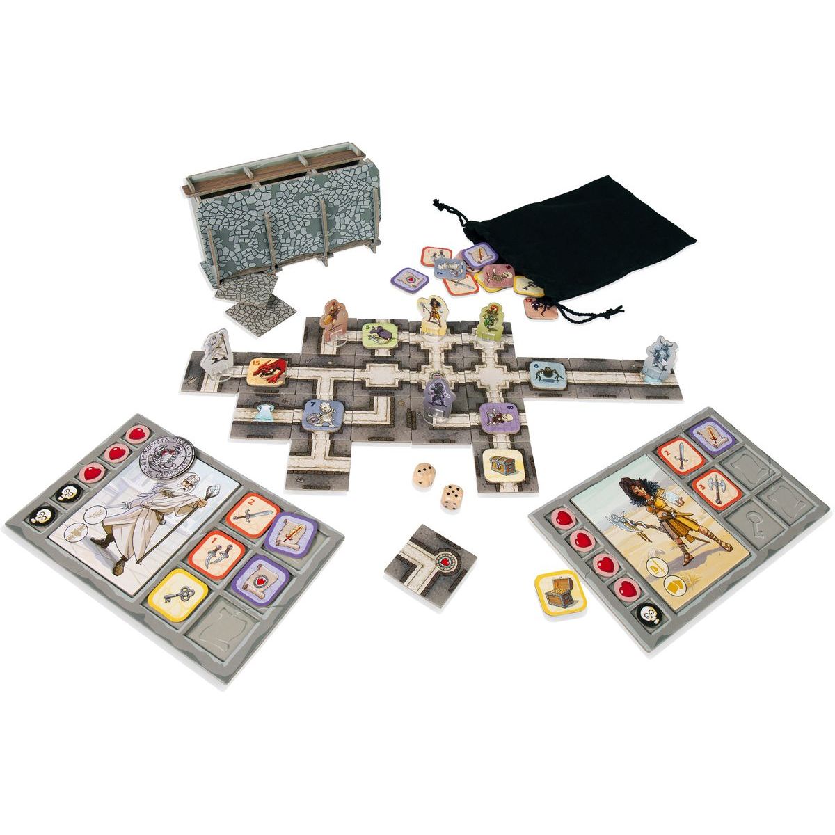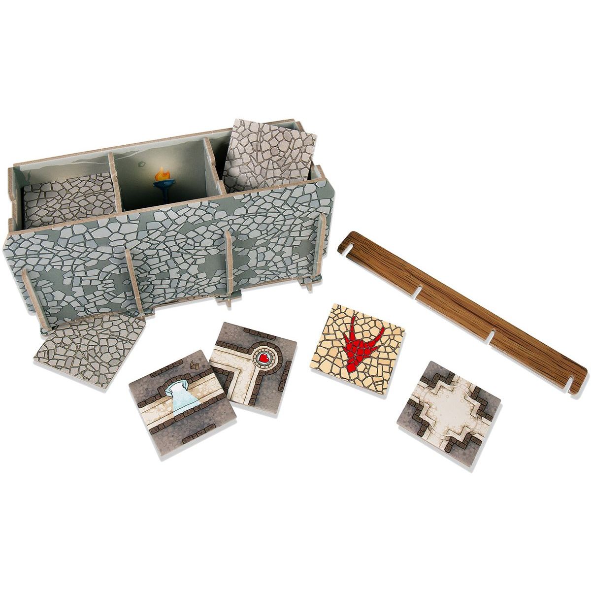 Obsah: 80 destiček katakomb, 6 figurek hrdinů, 6 karet hrdinů, 5 desek inventáře, žetony, kostky, věž na dílky, plastový insert, pravidla