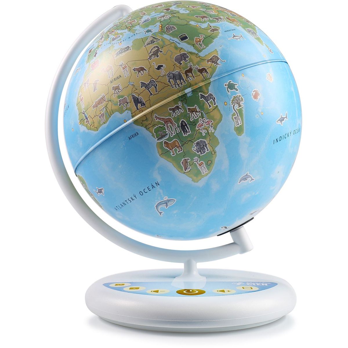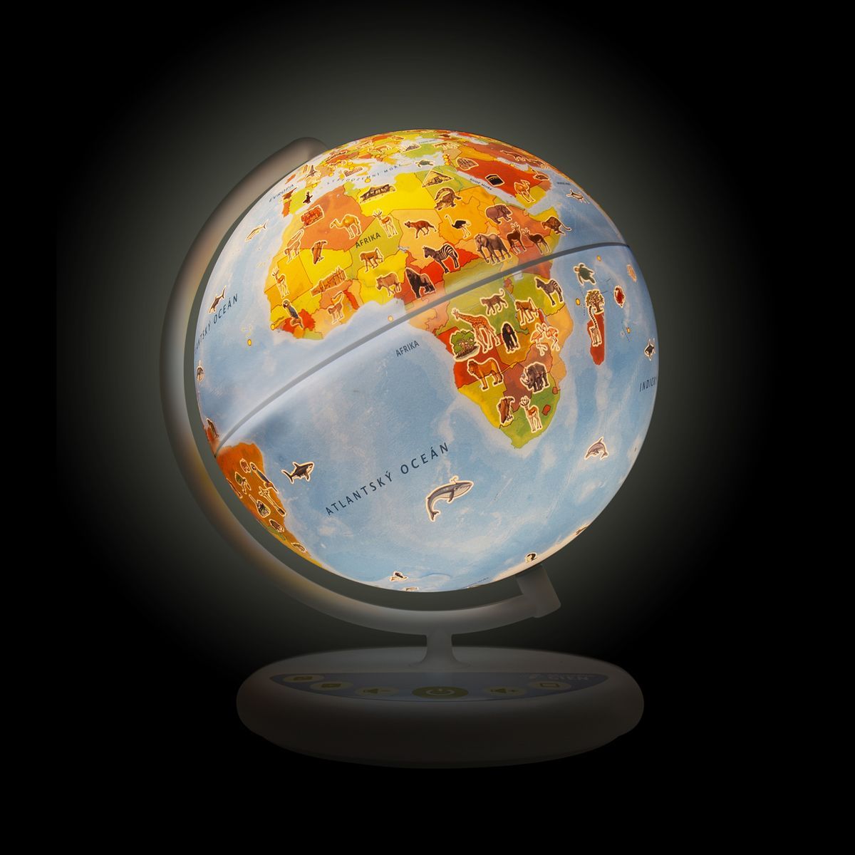 Glóbus obsahuje přes 800 zvuků vytvořených ve spolupráci se světovými geografy a v kombinaci se svíticí funkcí a detailním zpracováním se stává ideálním společníkem pro malé dobrodruhy, kteří chtějí poznat svět.