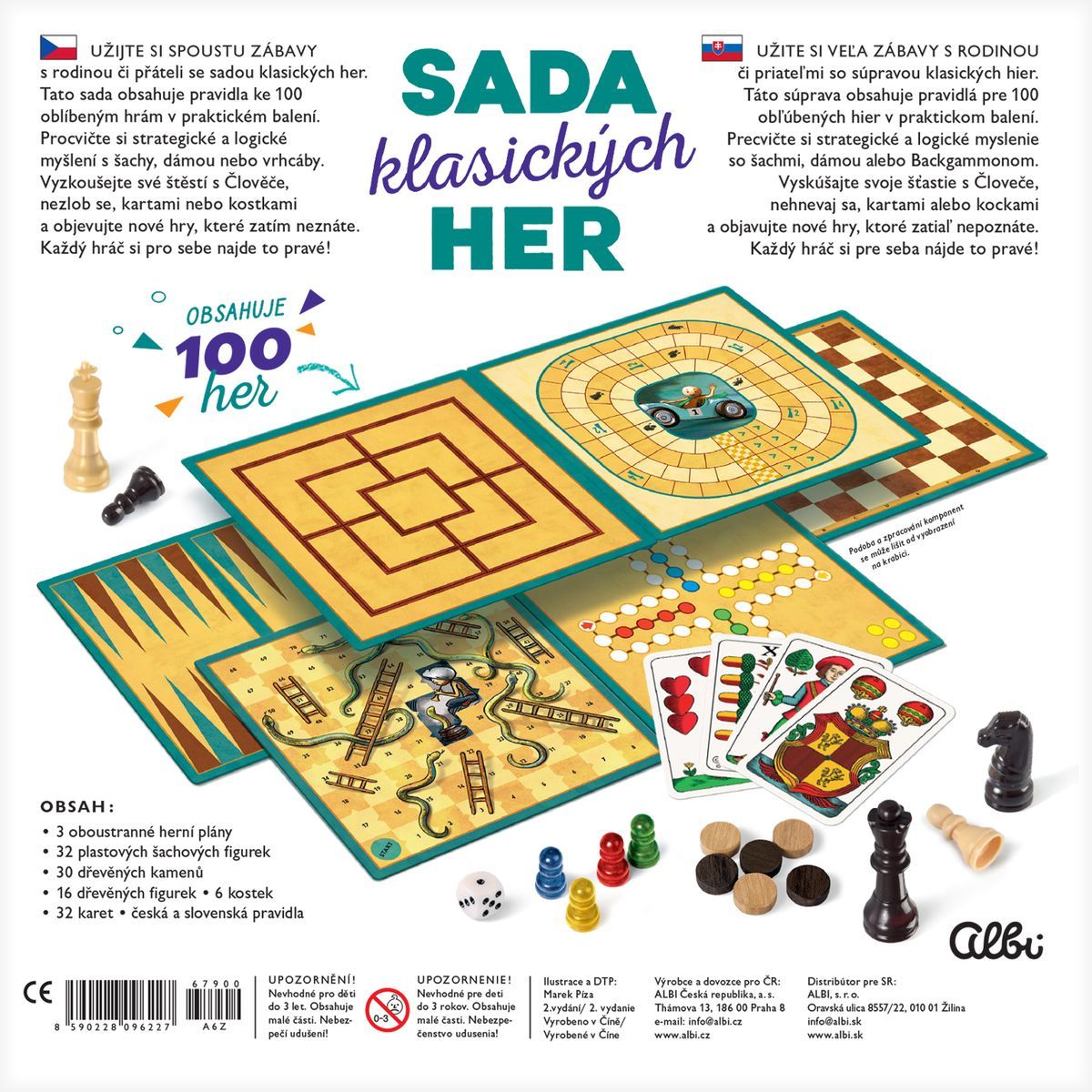 Sada klasických her Albi přináší nekonečnou zábavu pro malé i velké hráče. Objevte 100 her od šachů po Člověče, nezlob se, a zažijte hodiny rodinné i přátelské zábavy. Všechny komponenty jsou prakticky uspořádány, takže můžete ihned začít hrát. Hry rozvíjejí logické myšlení, strategii a zároveň přinášejí spoustu smíchu.
