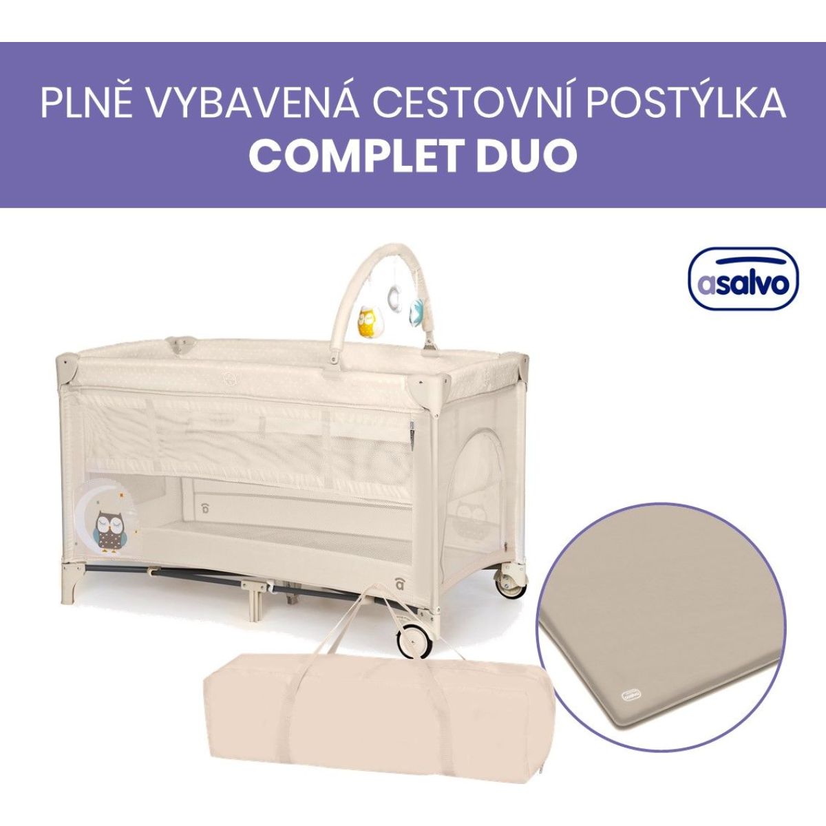 Cestovní postýlka COMPLET DUO kombinuje bezpečnost a praktický design. Dva síťované boky zajistí ideální cirkulaci vzduchu a dvě kolečka s brzdou usnadní manipulaci.