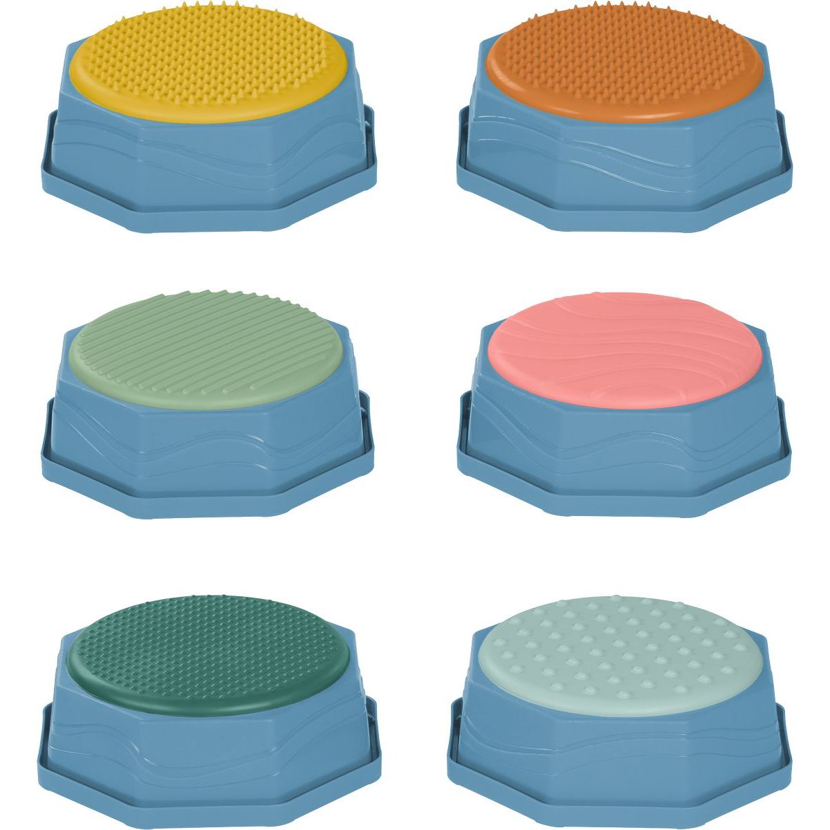 Skákání, balancování a nekonečná zábava! Balanční stupínky Balance & Hop promění každý pokoj v malou pohybovou dráhu plnou výzev. Šest barevných stupínků s různými texturami vybízí děti k objevování, pohybu a zkoušení nových cest.