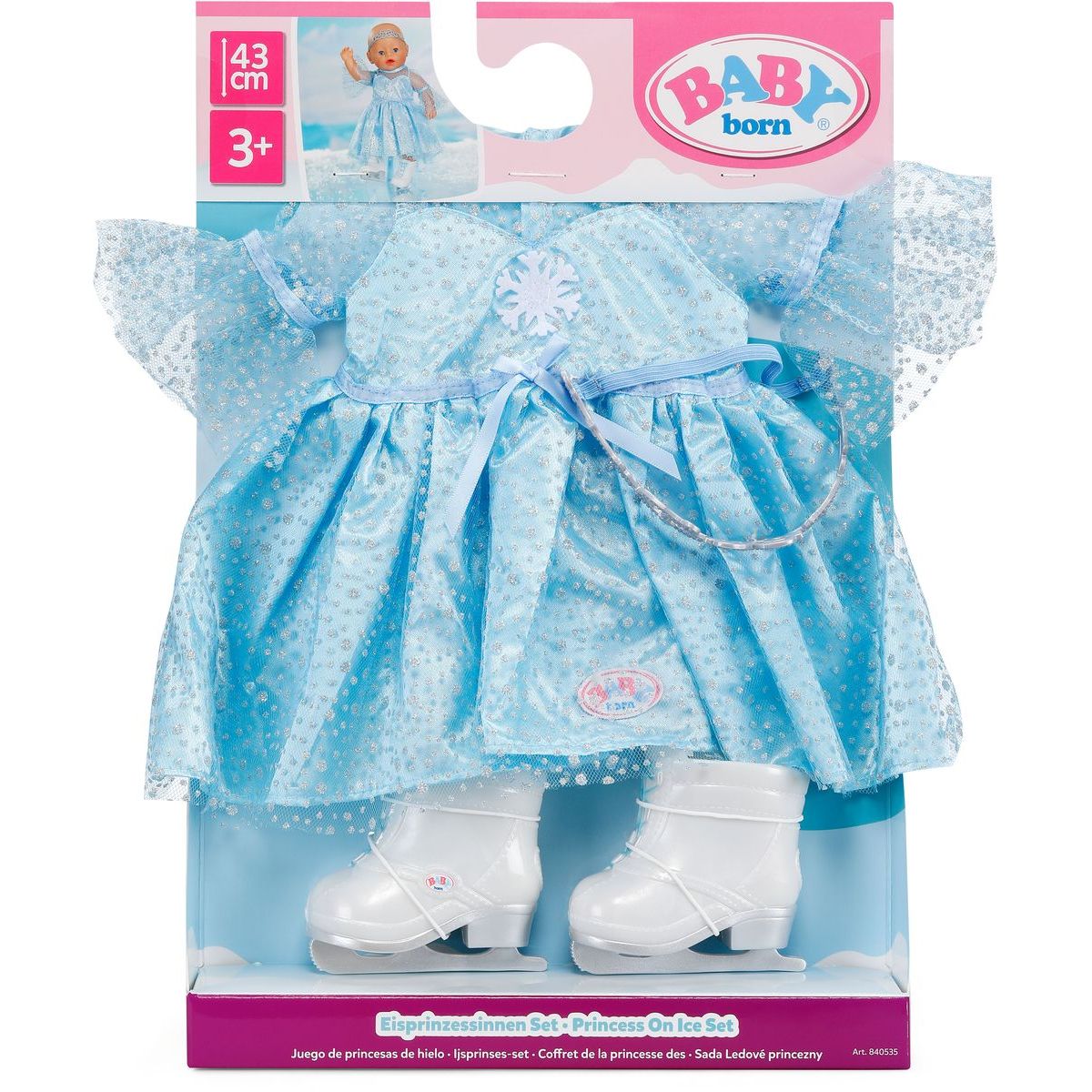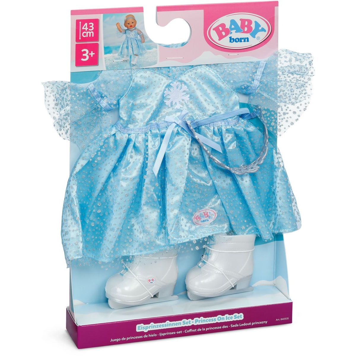 Tento outfit inspiruje k vyprávění kouzelných příběhů plných elegance a fantazie. Oblečení se snadno obléká a skvěle sedí jak panenkám velikosti 43 cm, tak i chlupatým BABY born medvídkům. Připravte se na krasobruslařskou show, která nikdy nekončí!