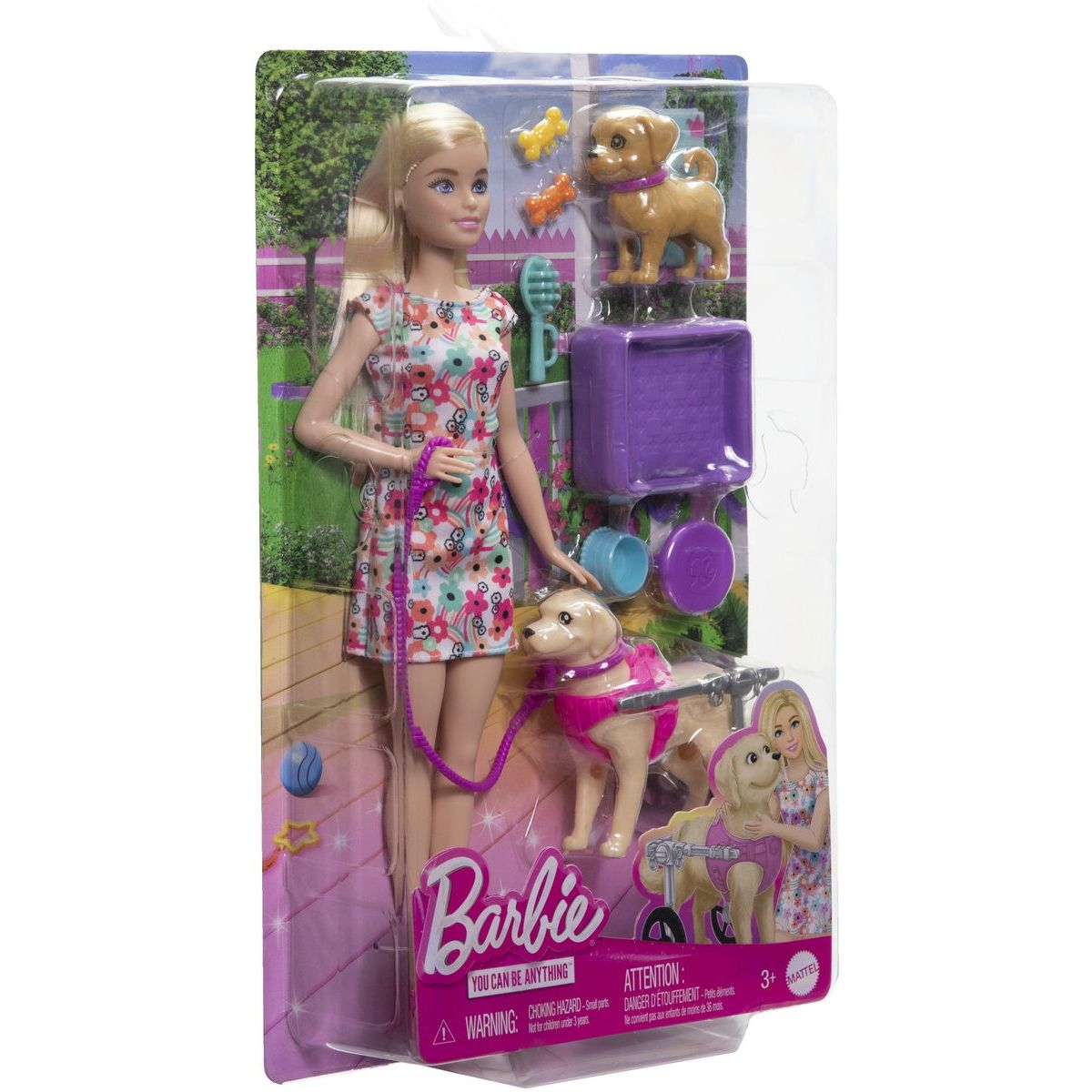 Obsah balení: panenka Barbie®, pejsek s invalidním vozíčkem, malé štěně, větší pes s podpůrným vozíkem