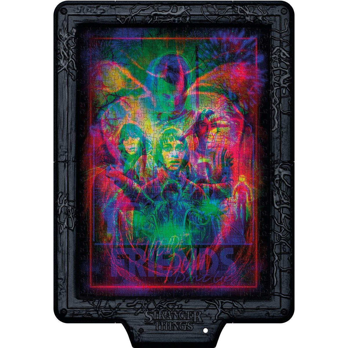 Zažijte nekonečná dobrodružství s Clementoni Svítícím metamorfickým puzzlem Stranger Things – Upside Down. S 520 dílky a speciálním LED páskem, který mění obrázek podle světla, je to skvělá zábava pro všechny fanoušky. Po sestavení o rozměrech cca 36×49 cm puzzle září a připomíná atmosféru seriálu. Součástí je také rám a lepidlo, aby vše drželo pevně pohromadě.