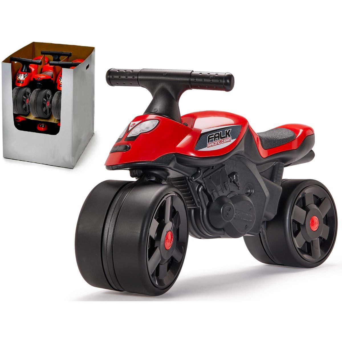 Připravte se na start! Červené odrážedlo Falk v atraktivním Racing designu promění každou procházku v napínavou velkou cenu. Tato motorka s nádechem retro stylu není jen stylovým doplňkem dětského pokojíčku, ale především bezpečným parťákem pro první samostatné kilometry vašich nejmenších. Robustní široká kola dodají malým závodníkům potřebnou jistotu a stabilitu, ať už se prohánějí po obývacím pokoji nebo na dětském hřišti.