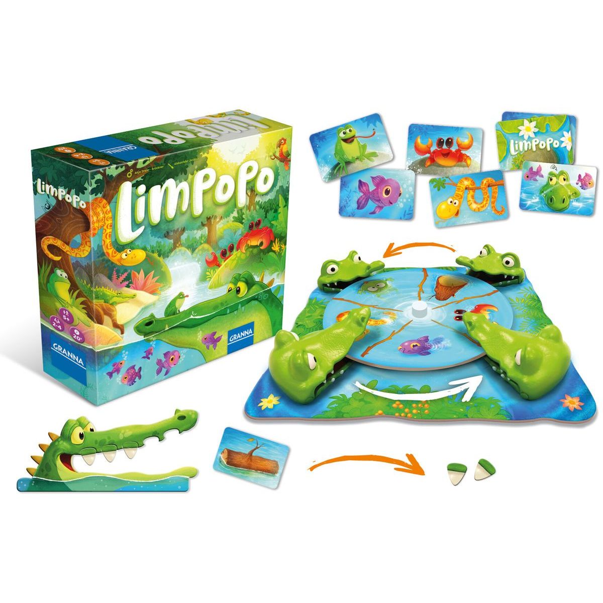 Barevné herní komponenty, svižná pravidla a humor dělají z Limpopa ideální rodinnou hru pro děti i dospělé. Hra trénuje reflexy, pozornost i strategické rozhodování – a hlavně přináší spoustu smíchu.