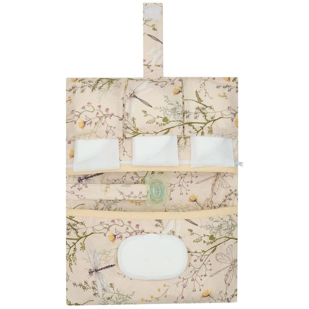 Praktický cestovní organizér v krásném textilním provedení s vnitřními přehrádkami vám pomůže přehledně uložit přebalovací potřeby pro vaše miminko. Uvnitř najdete kapsu na pleny, přihrádku na vlhčené ubrousky, kapsu na zip a 3 malé kapsy na drobnosti. Organizér se snadno zapíná na suchý zip. Složení: potah 100% bavlna, výplň 100% polyester Rozměry: 25 x 18 x 2 cm