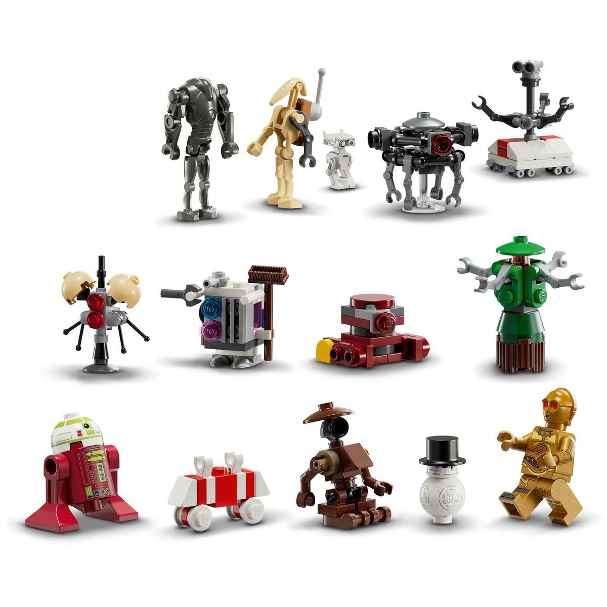 Každé z 24 okének skrývá překvapení z předaleké galaxie – od vánočních minifigurek C-3PO a Jawy, přes roztomilého Babu Frika, až po droidy a miniaturní modely, které oživí vaši droidí dílnu.