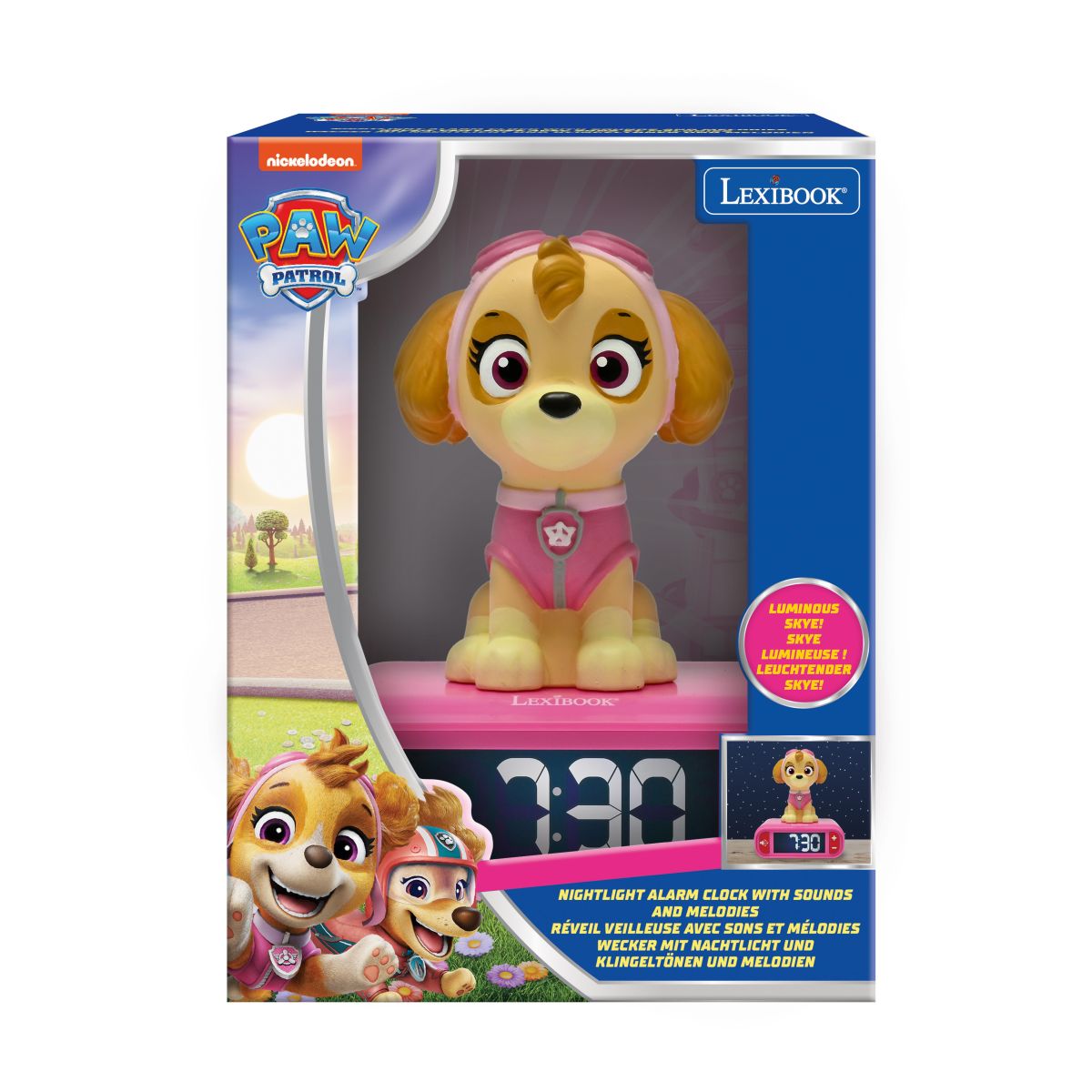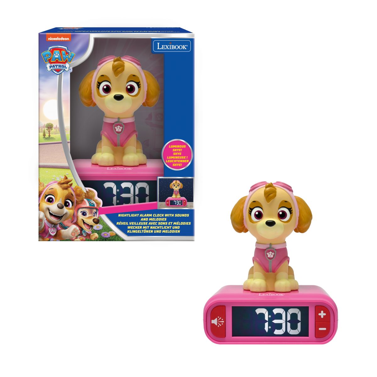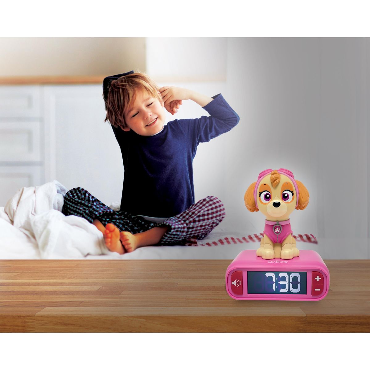 Budík Lexibook Tlapková patrola se svítící figurkou udělá z ranního vstávání hru plnou zábavy. Díky jednoduchému ovládání a přehlednému displeji ho děti snadno zvládnou používat samy. Svítící figurka navíc krásně ozdobí pokojíček a dodá mu veselou atmosféru.