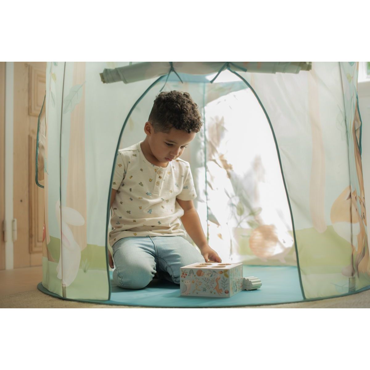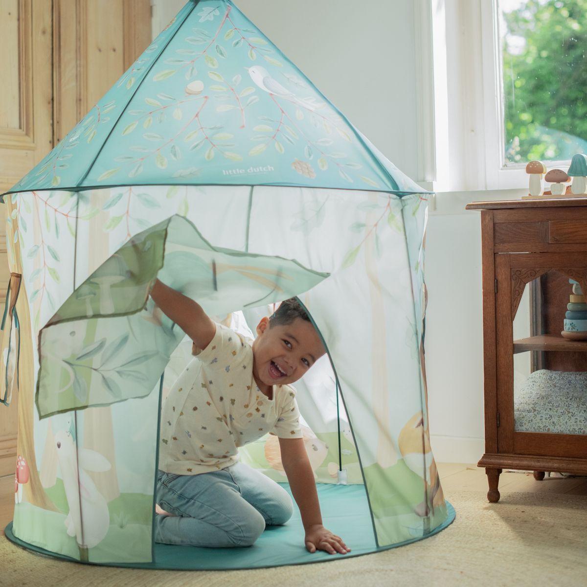 Zažijte nekonečná dobrodružství díky Little Dutch Stanu na hraní Forest Friends. Tento stan s krásnými motivy lesa je perfektní pro děti od 2 let, které milují schovávačky a vlastní prostor na hraní. Je vyroben z měkkého polyesteru a je určený jen do interiéru. Rozměry stanu jsou 105 x 105 x 125 cm, což poskytuje dostatek místa pro zábavu a hry.