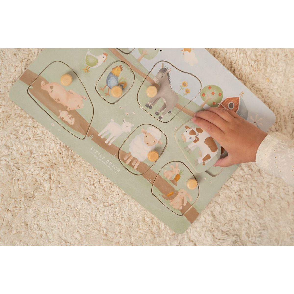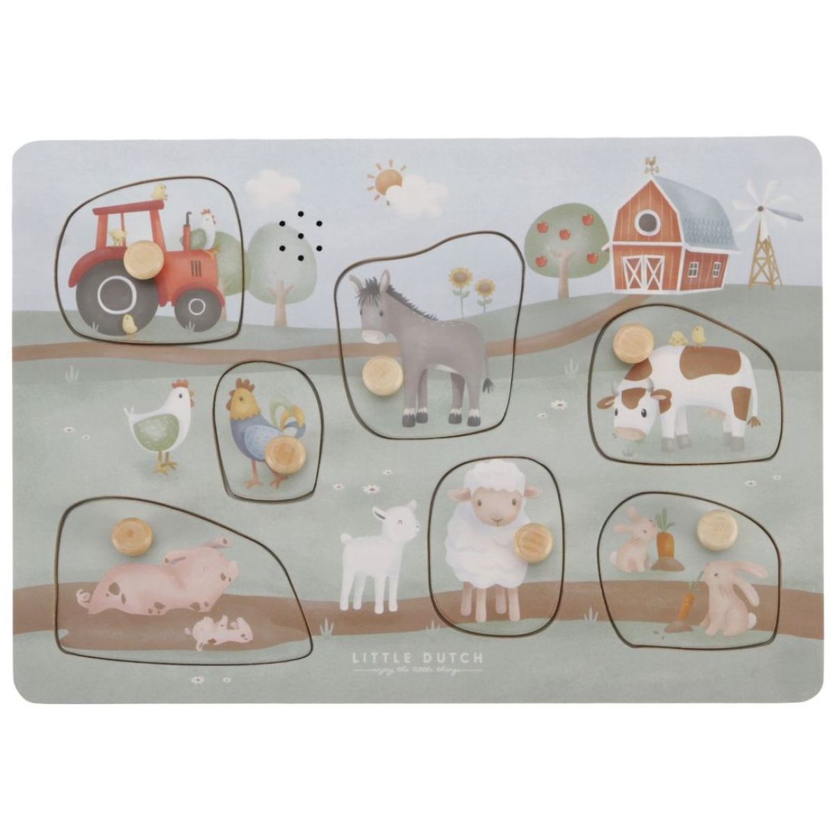 Zažijte nekonečná dobrodružství s Little Dutch Vkládacím puzzlem se zvukem Farma. Tato dřevěná hračka obsahuje 7 dílků ve tvaru traktoru a zvířátek, které při správném vložení vydávají zvuky. Puzzle je vyrobeno z kvalitního dřeva a je vhodné pro děti od 12 měsíců. Rozměry 21 x 30 x 2,4 cm. Baterie 2x AAA nejsou součástí balení.