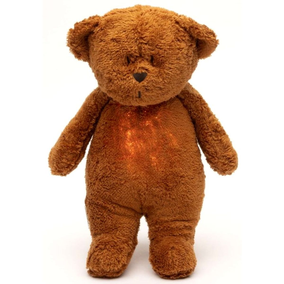 Zažijte klidné noci s Moonie Usínáčkem Medvědem 2.0 Organic Caramel, který pomáhá miminkům usnout díky pěti přírodním zvukům a jemnému nočnímu světlu se sedmi barvami. Hračka má inteligentní senzor pláče, který aktivuje zvuky a světlo, když dítě pláče. Nabíjení je snadné přes USB kabel a baterie vydrží až 8 hodin. Po vyjmutí modulu lze hračku prát v ruce. Vhodné pro děti od narození. Vhodné pro děti od 0 let Počet barev světla: 7 Počet relaxačních zvuků: 5 Doba přehrávání: 30/60/90 minut Rozměry: 28 x 16 x 10,5 cm Baterie: dobíjecí, USB kabel součástí Inteligentní senzor pláče