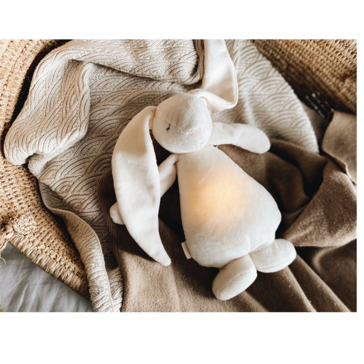 Zažijte klidné noci s Moonie Usínáčkem Zajíčkem 2.0 Cream, který pomáhá miminkům usnout díky jemným zvukům a nočnímu světlu s výběrem sedmi barev. Nabízí pět přírodních zvuků, kalimbu a dvě ukolébavky. Inteligentní senzor pláče aktivuje světlo a zvuk, když dítě začne plakat. Dobíjí se přes USB a lze prát po vyjmutí modulu. Rozměry 28 x 16 x 10,5 cm. Vhodné pro děti od narození. Baterie nejsou součástí balení.