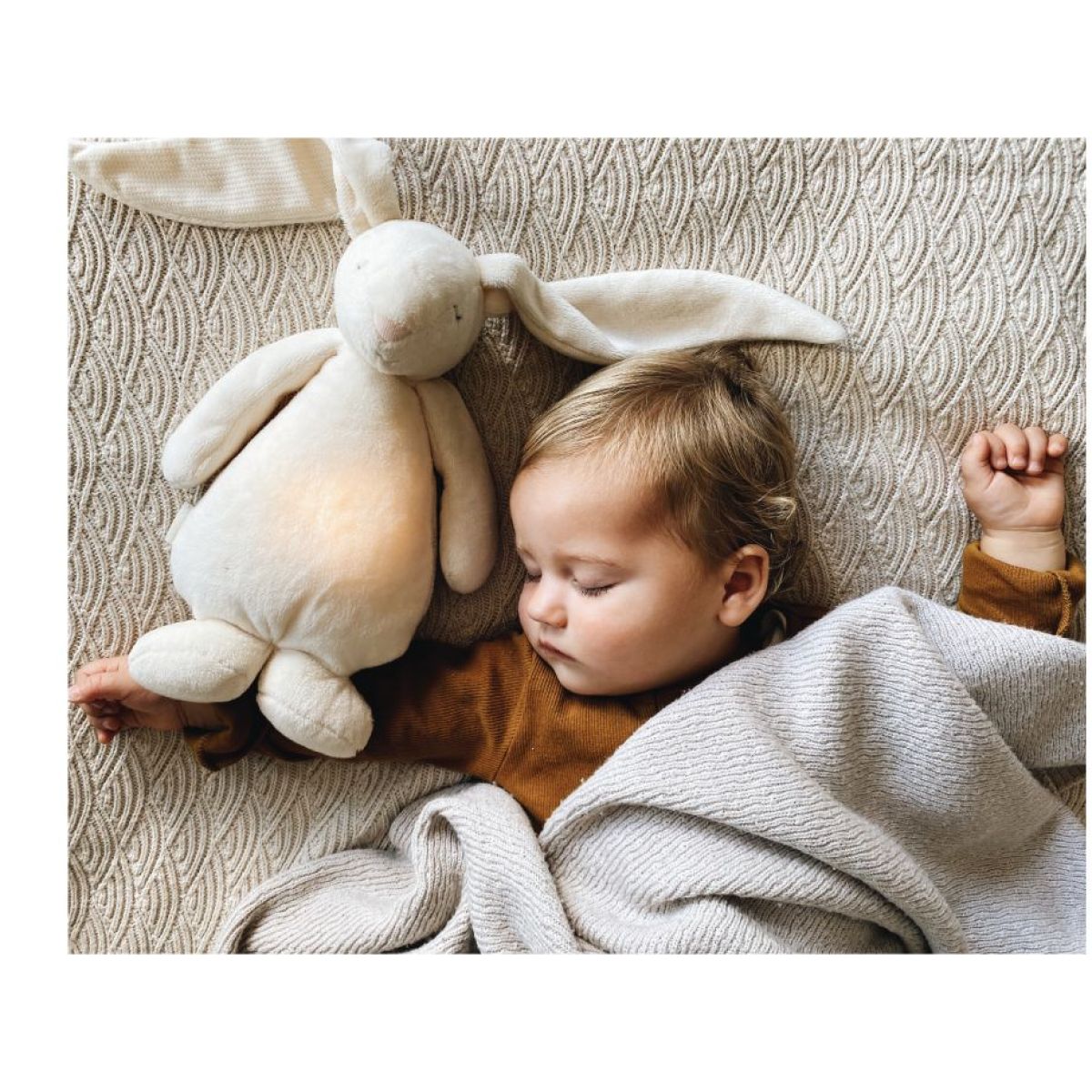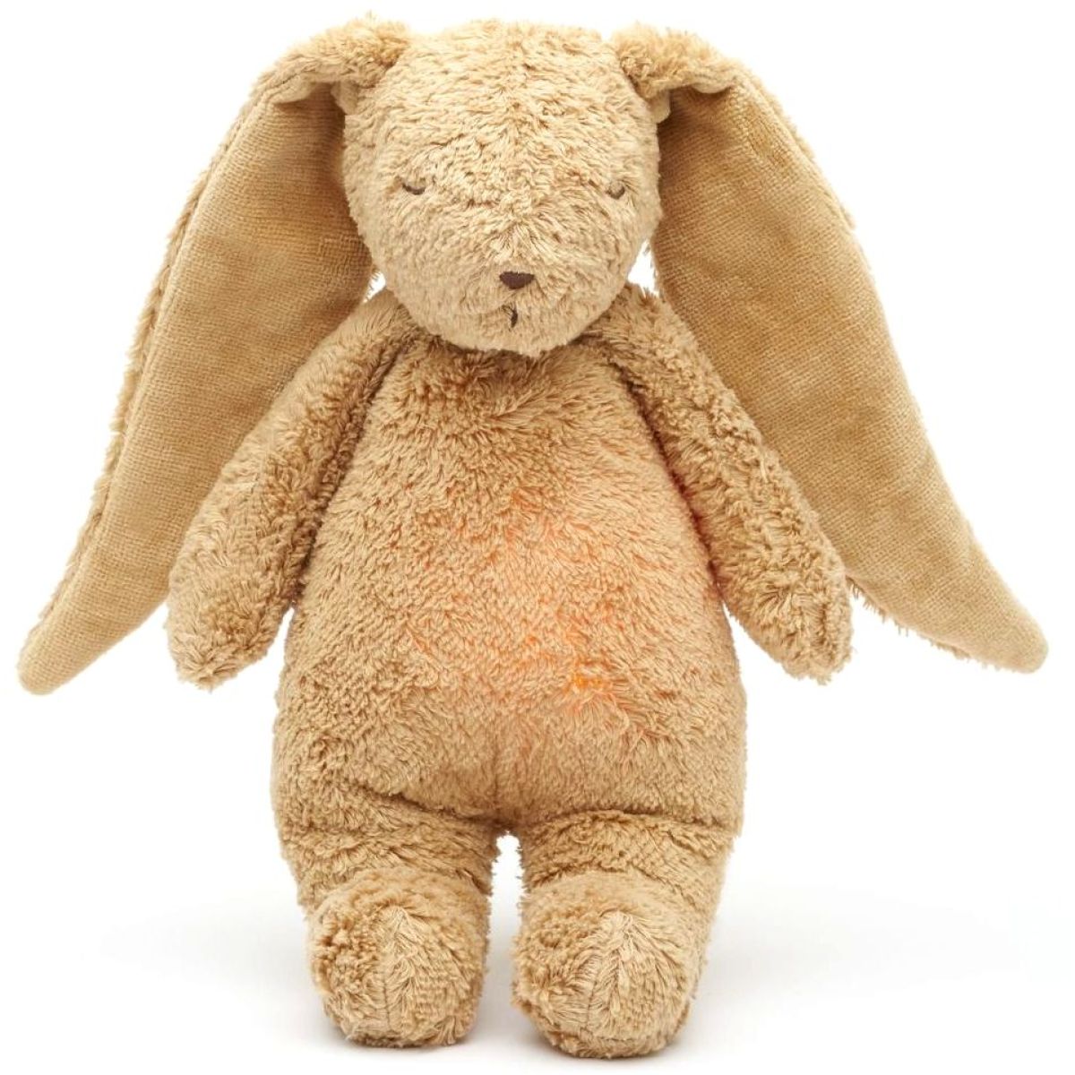 Zažijte klidné noci s Moonie Usínáčkem Zajíčkem 2.0 Organic Cappuccino. Tento usínáček nabízí pět uklidňujících zvuků a noční světlo se sedmi barvami, které pomáhají dětem lépe usnout. Inteligentní senzor pláče aktivuje zvuk a světlo, když dítě začne plakat. Hračka je vyrobena z organické bavlny a je bezpečná pro děti. Dobíjí se USB kabelem a vydrží až 8 hodin. Rozměry jsou 28 x 16 x 10,5 cm. Vhodné pro děti od narození.
