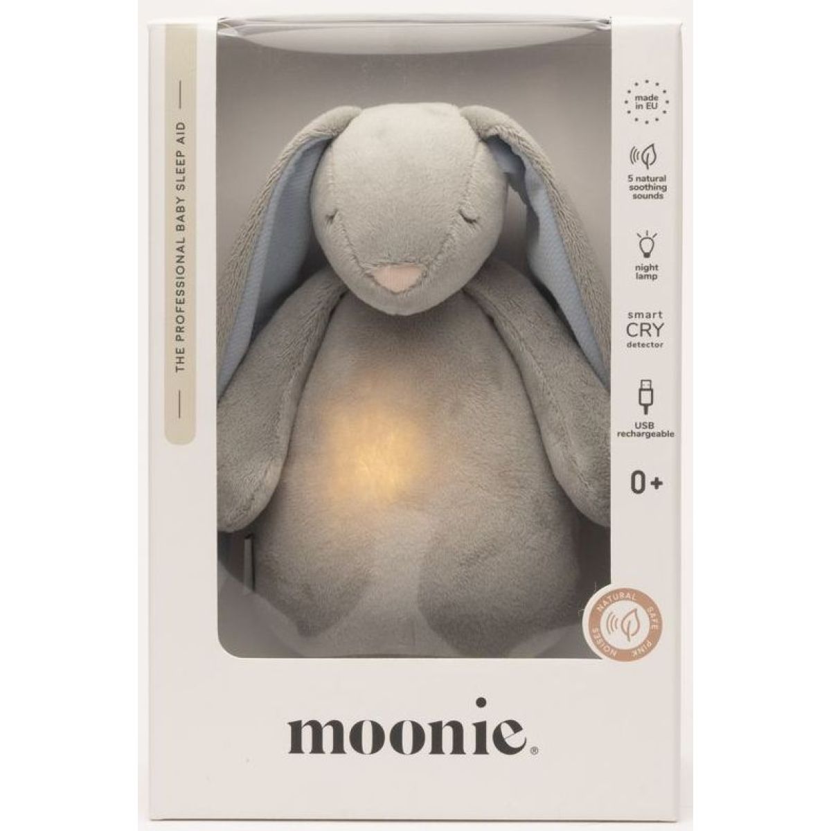 Zažijte klidné noci s Moonie Usínáčkem Zajíčkem 2.0 Sky, který pomáhá miminku snadno usnout díky přírodním zvukům a jemnému nočnímu světlu. Hračka má sedm barev svícení a inteligentní senzor pláče, který aktivuje zvuk a světlo, když dítě začne plakat. Dobíjí se pomocí USB kabelu, který je součástí balení. Je vyrobena z bezpečných materiálů a lze ji prát v pračce. Vhodné pro děti od narození. Vhodné pro děti od 0 let Rozměry: 28 x 16 x 10,5 cm Baterie: dobíjecí USB, výdrž až 8 hodin Baterie součástí: ne