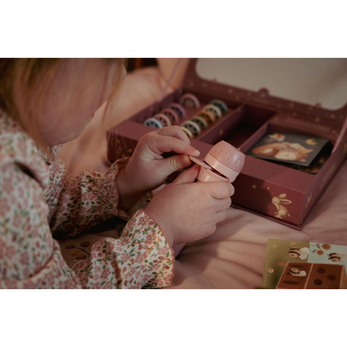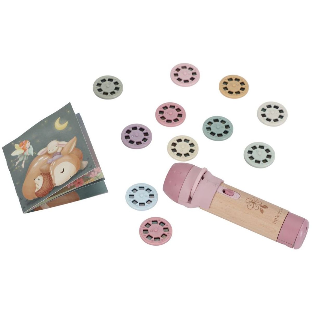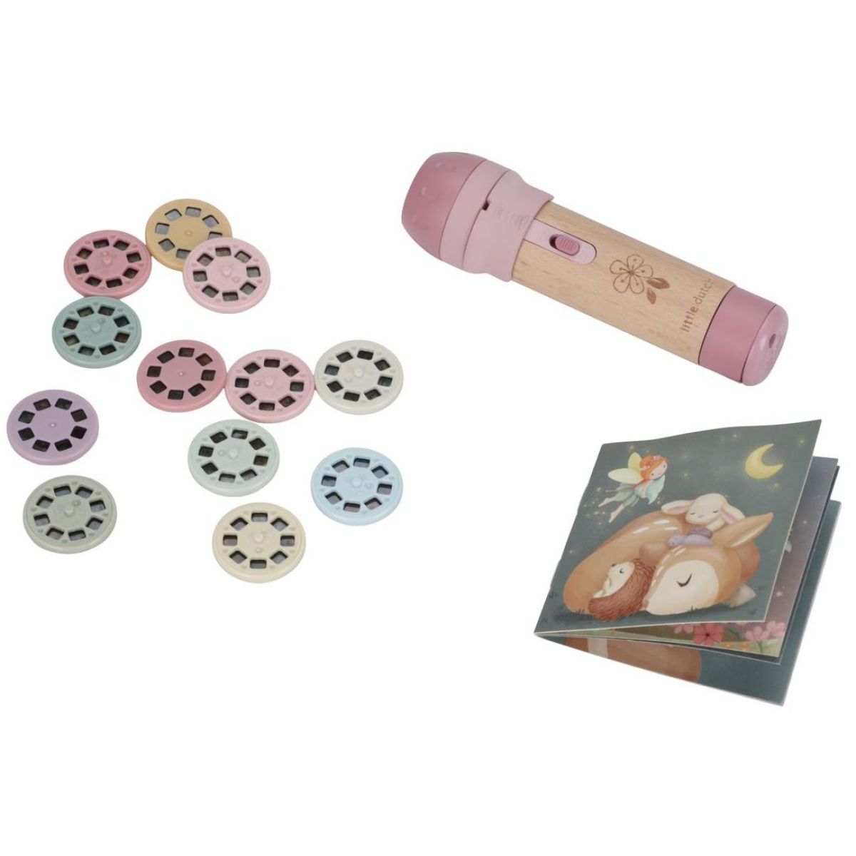 Zažijte nekonečná dobrodružství s projektorem Pink, který promítá 12 pohádkových příběhů na stěnu. Díky pevné dřevěné rukojeti a napájení na baterie si ho děti mohou vzít kamkoliv. Baterie 1 x AAA nejsou součástí balení. Vhodné pro děti od 4 let. Počet promítacích kotoučků: 12, Materiál: dřevo.
