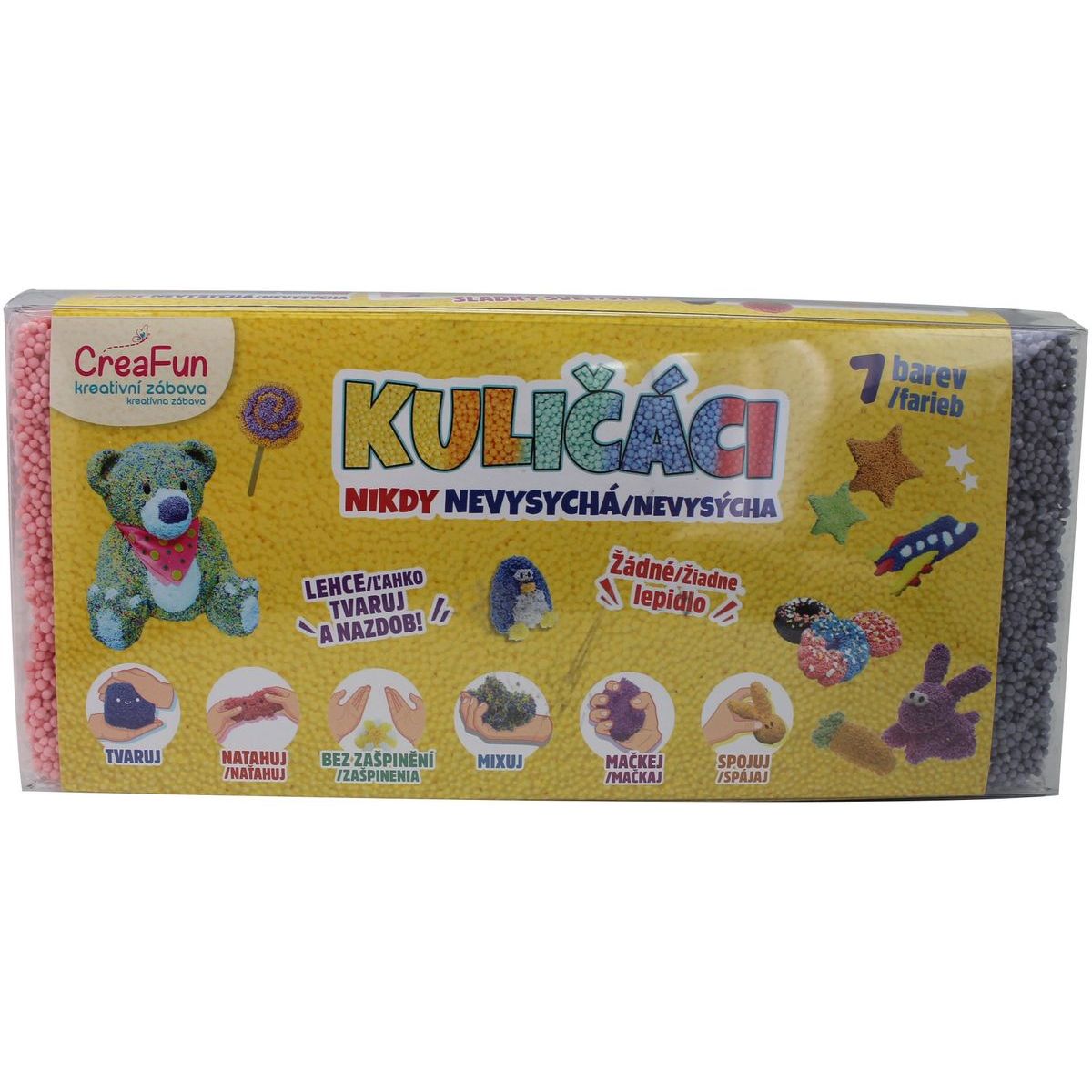Seznamte své děti s hravou kuličkovou hmotou Sparkys CreaFun v sedmi zářivých barvách! Hmota je nevysychající, netoxická a velmi dobře tvarovatelná, takže malí umělci mohou míchat barvy a tvořit stále nové výtvory. Je vhodná pro děti od 3 let a díky opakovanému použití přináší hodiny zábavy bez omezení. Rozměr balení je praktických 17 x 24 x 11 cm.