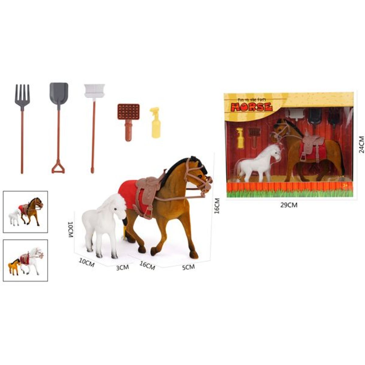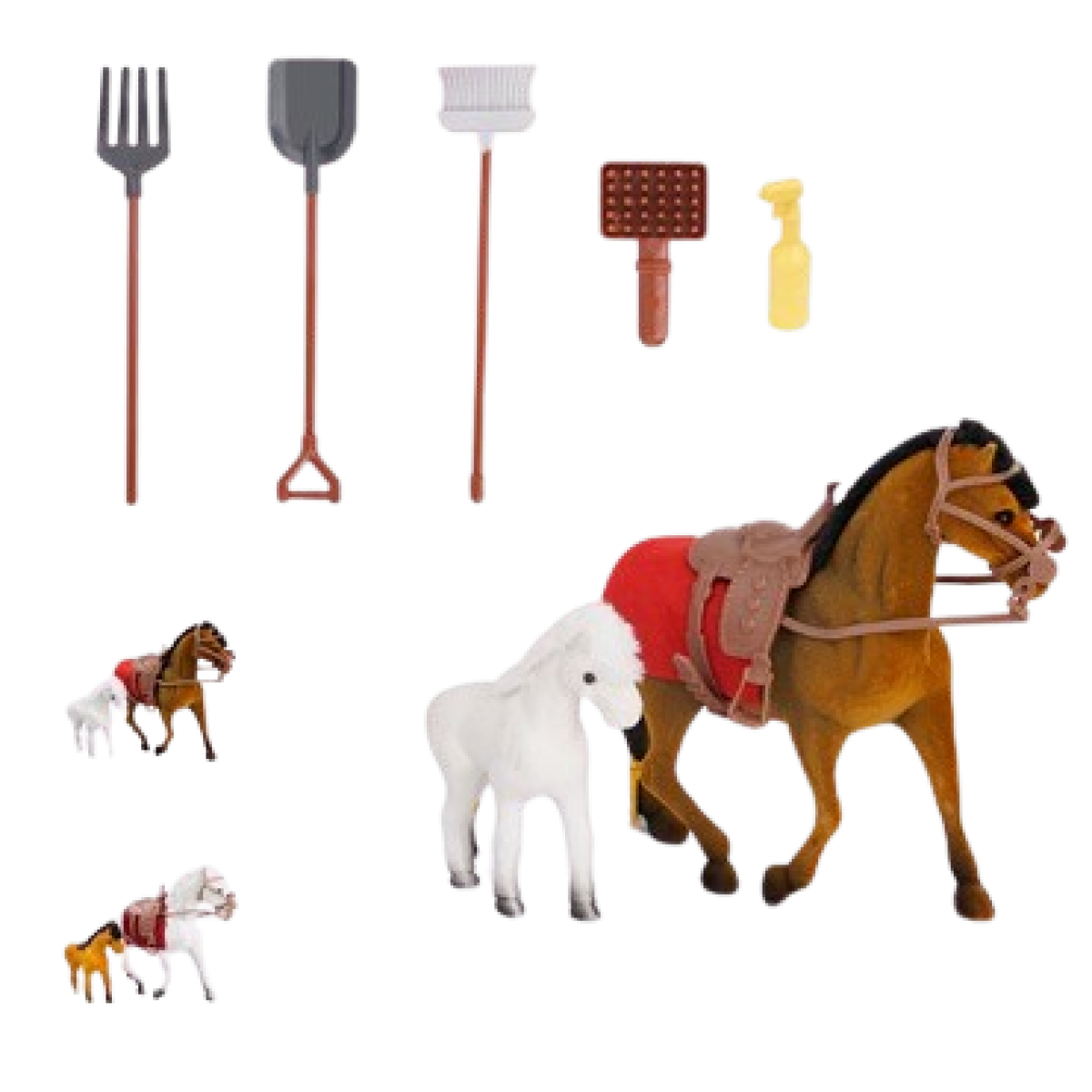 Pro malé obdivovatele koní je tu sada Sparkys Kůň a poník s příslušenstvím 7ks, která přináší svět jezdeckých zážitků přímo domů. S touto hravou sadou mohou děti od 3 let rozvíjet svou představivost při hraní s koněm, poníkem i jejich doplňky. Každý prvek je navržen tak, aby děti bavily a zároveň podporovaly jejich zájem o zvířata a přírodu. Užijte si společné chvíle plné radosti a objevování nových příběhů ve světě malých jezdců.