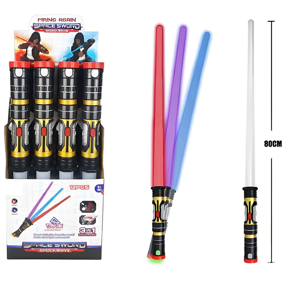 Světelný meč Sparkys 3v1 přináší dětem tři varianty zábavy v jednom! Malí rytíři a rytířky od 3 let si užijí hodiny hraní s tímto svítícím mečem, který je lehký a snadno ovladatelný. Baterie jsou součástí balení, takže můžete ihned začít svou hvězdnou misi plnou fantazie a dobrodružství. Vezměte ho na cesty nebo ho mějte doma vždy po ruce pro rychlou dávku zábavy.