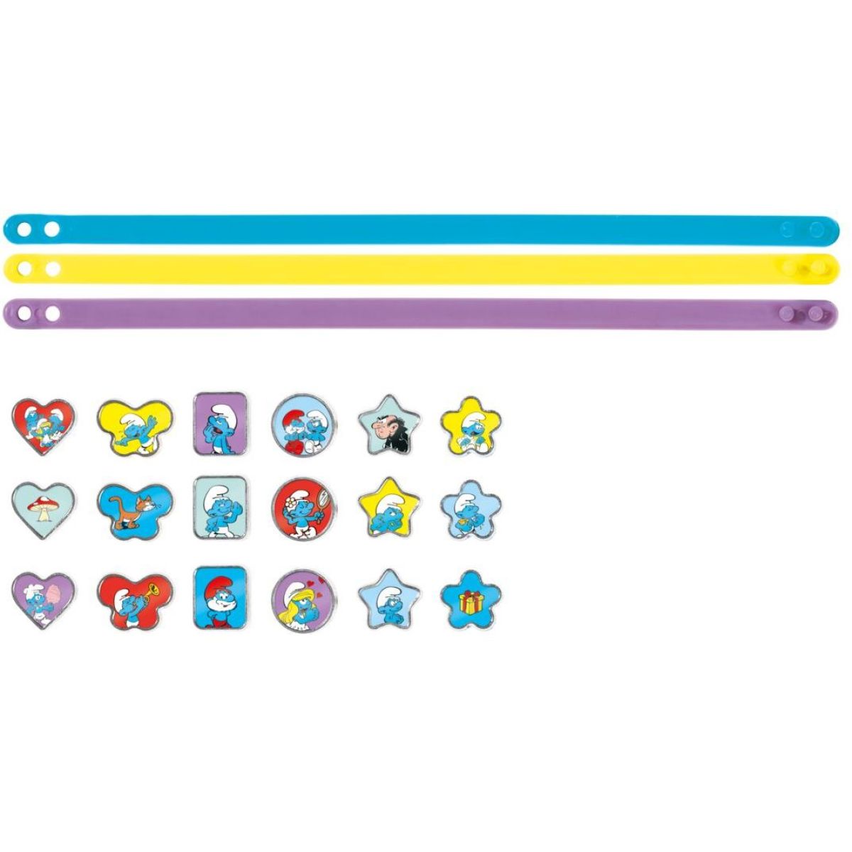 Malí fanoušci Šmoulů si mohou nyní sami vyrobit krásné náramky! Balení obsahuje vše potřebné – tři plastové náramky a osmnáct doplňků s motivy Šmoulů, které potěší každé dítě od 3 let. Tato hračka pomáhá rozvíjet jemnou motoriku a podporuje kreativitu při tvoření vlastních ozdob. Díky malým dílkům však není vhodná pro děti mladší tří let. Vhodné pro děti od 3 let Počet dílků: 0 Rozměry balení: 15 x 20.5 x 2.5 cm Hmotnost balení: 0.065 kg